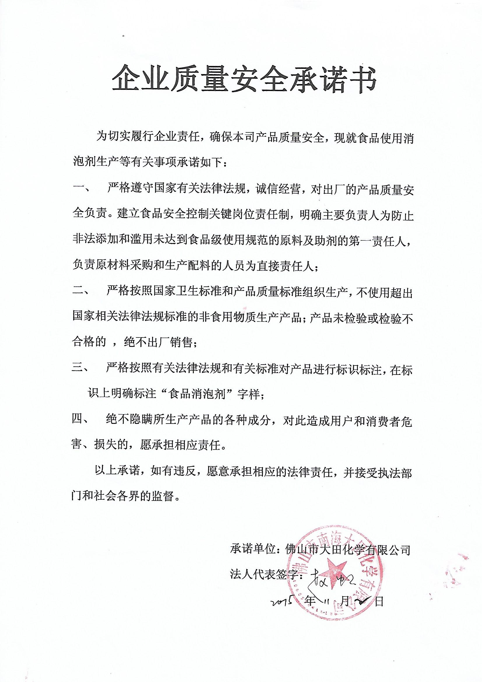 企業質量安全承諾書